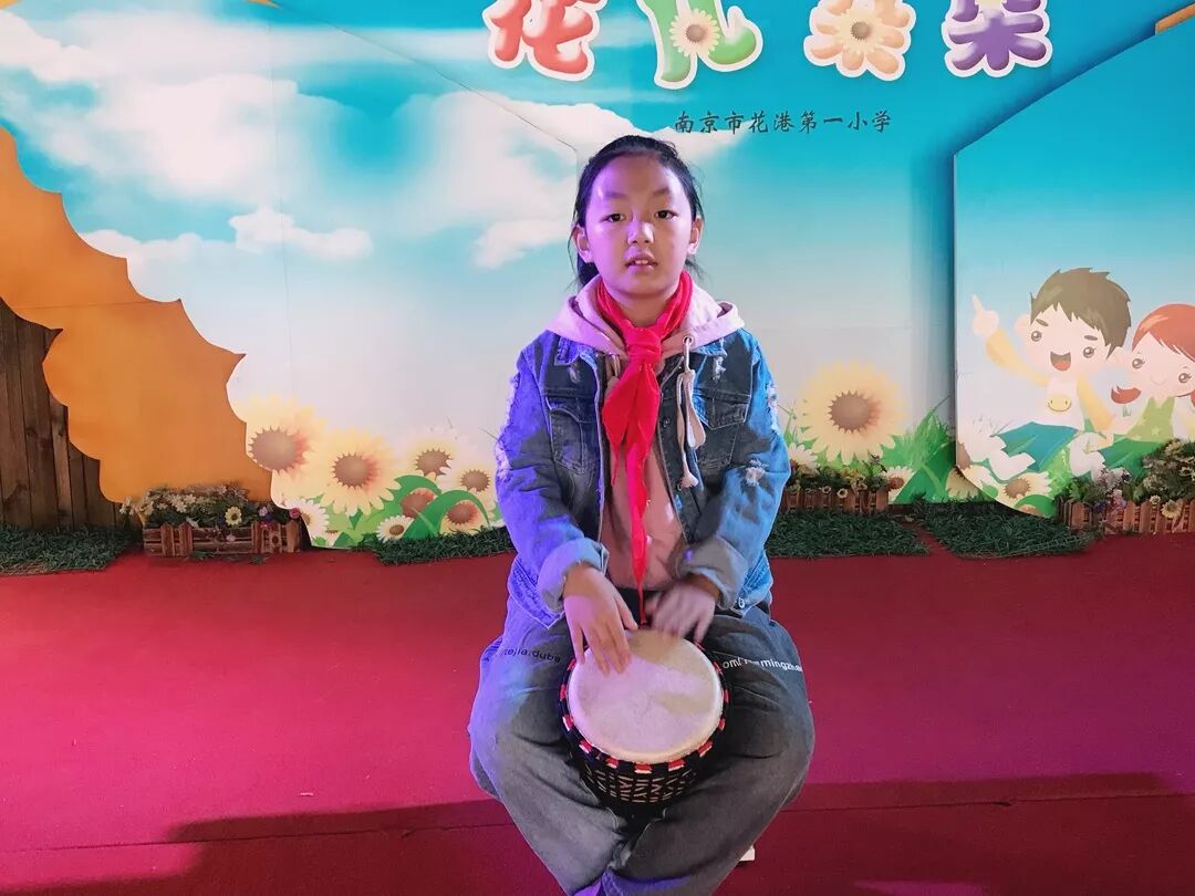 二(5)班任思璇同学的鼓声穿过学校的林荫道,飘荡在学校的草地上,花丛中,是学校早晨一道亮丽的风景线。