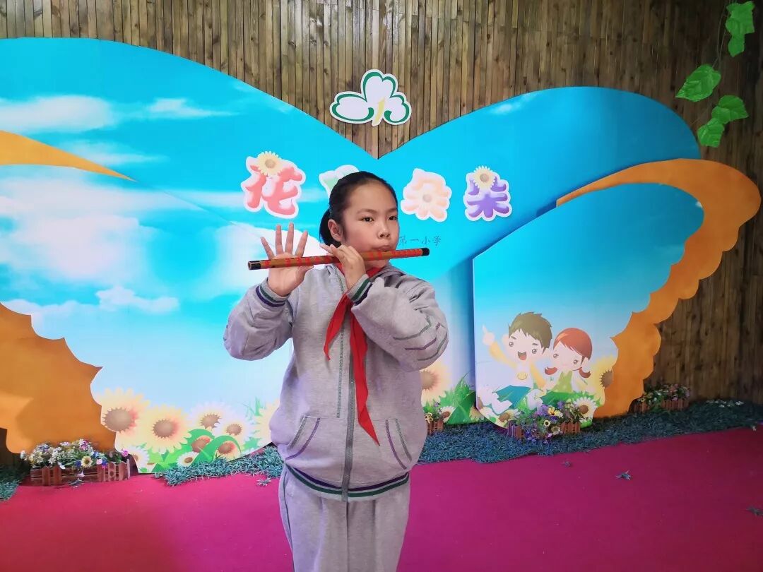 四(1)班王雪淇同学的笛声活泼可爱,充满童趣,在教学楼中回荡着,让人忍不住莞尔一笑。