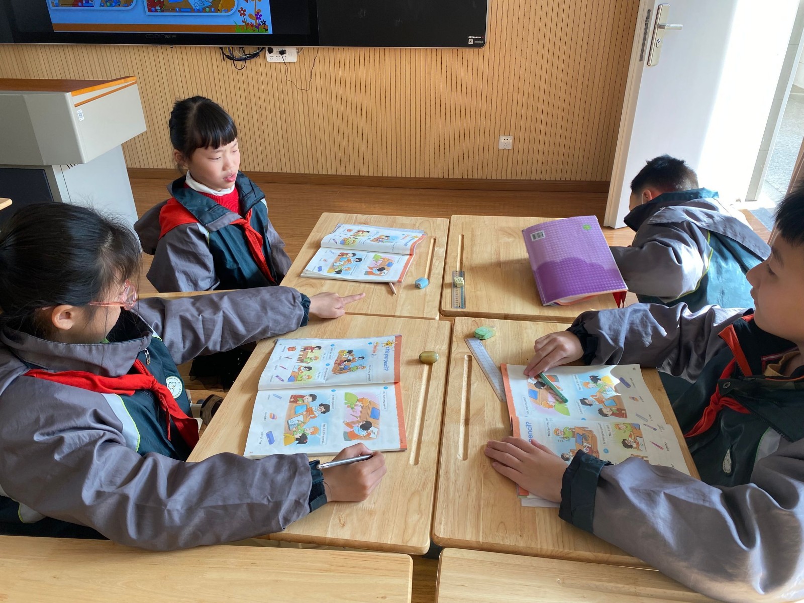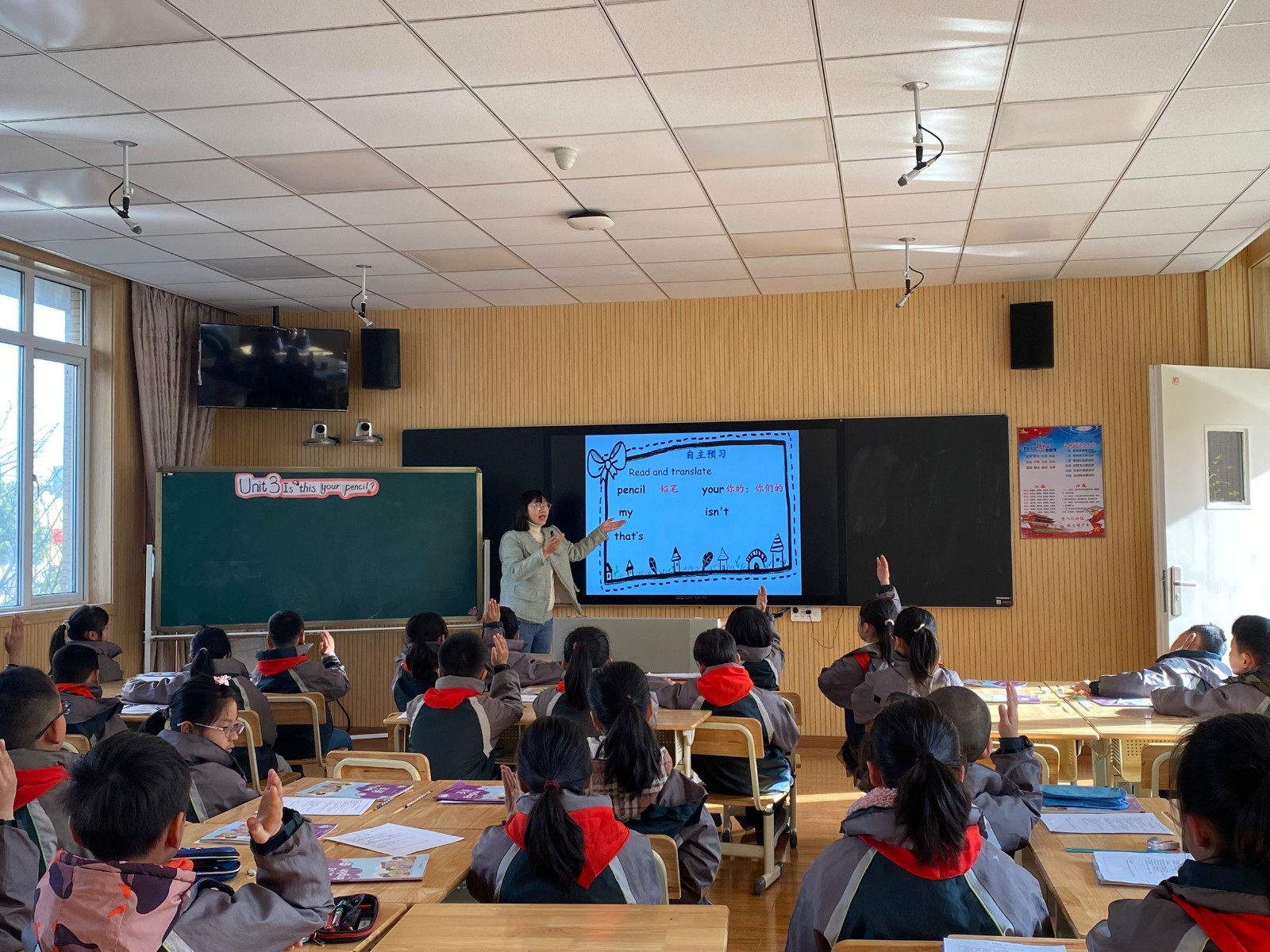 周四上午,李美如老师进行《Unit1 Is this your pencil?》第一课时第三次教学。李老师以复习导入,由rubber引入文具类话题展开学习,以chant环节综合词汇和句型的练习,注重小组和个人等不同方式的发音教学及跟读教学,关注到学生发音的问题并及时纠正。