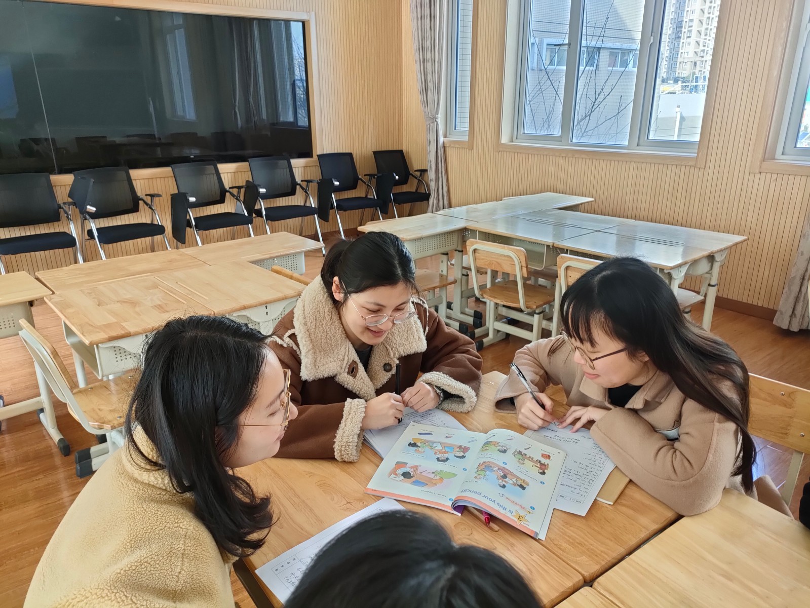 本次周周教研由英语组围绕校本教研主题“主题语境下的小学英语语篇教学研究”组织开展同课试上层层改进教学研讨活动,第一次由陈可欣老师执教,第二次由毛毛老师执教,第三次由李美如老师执教。