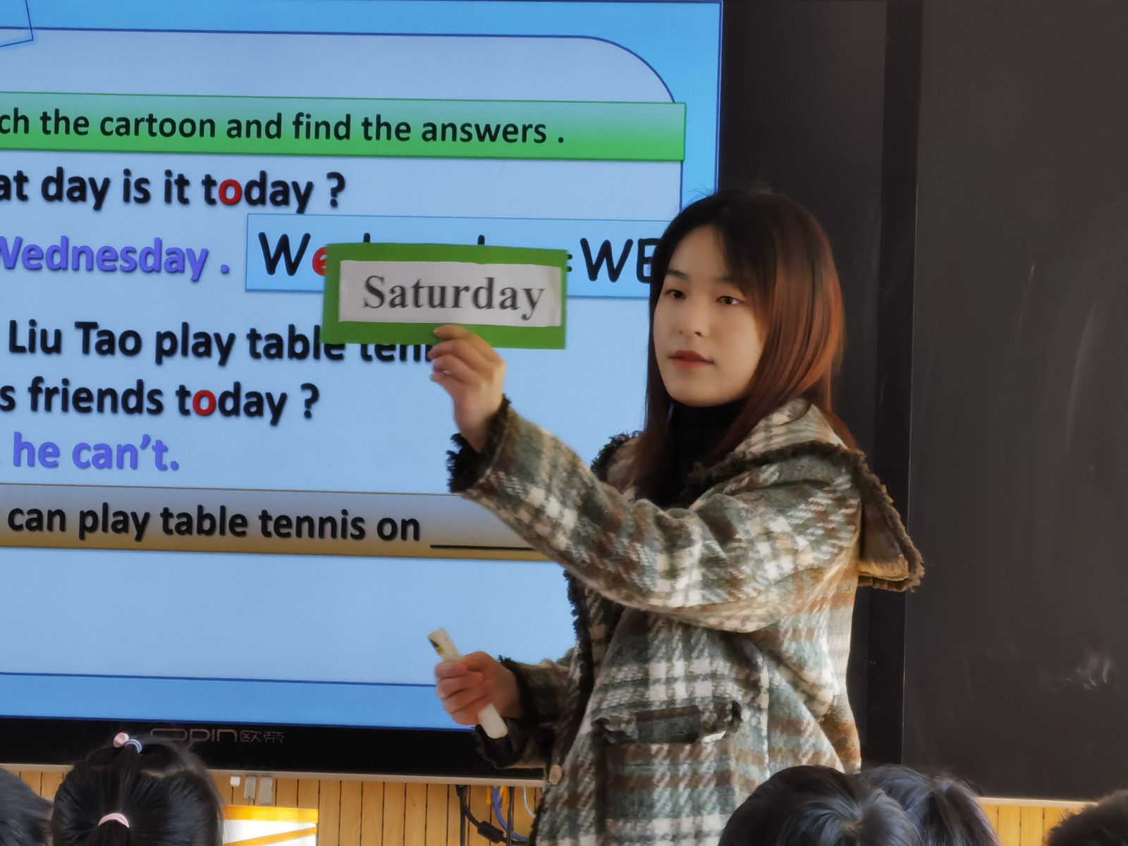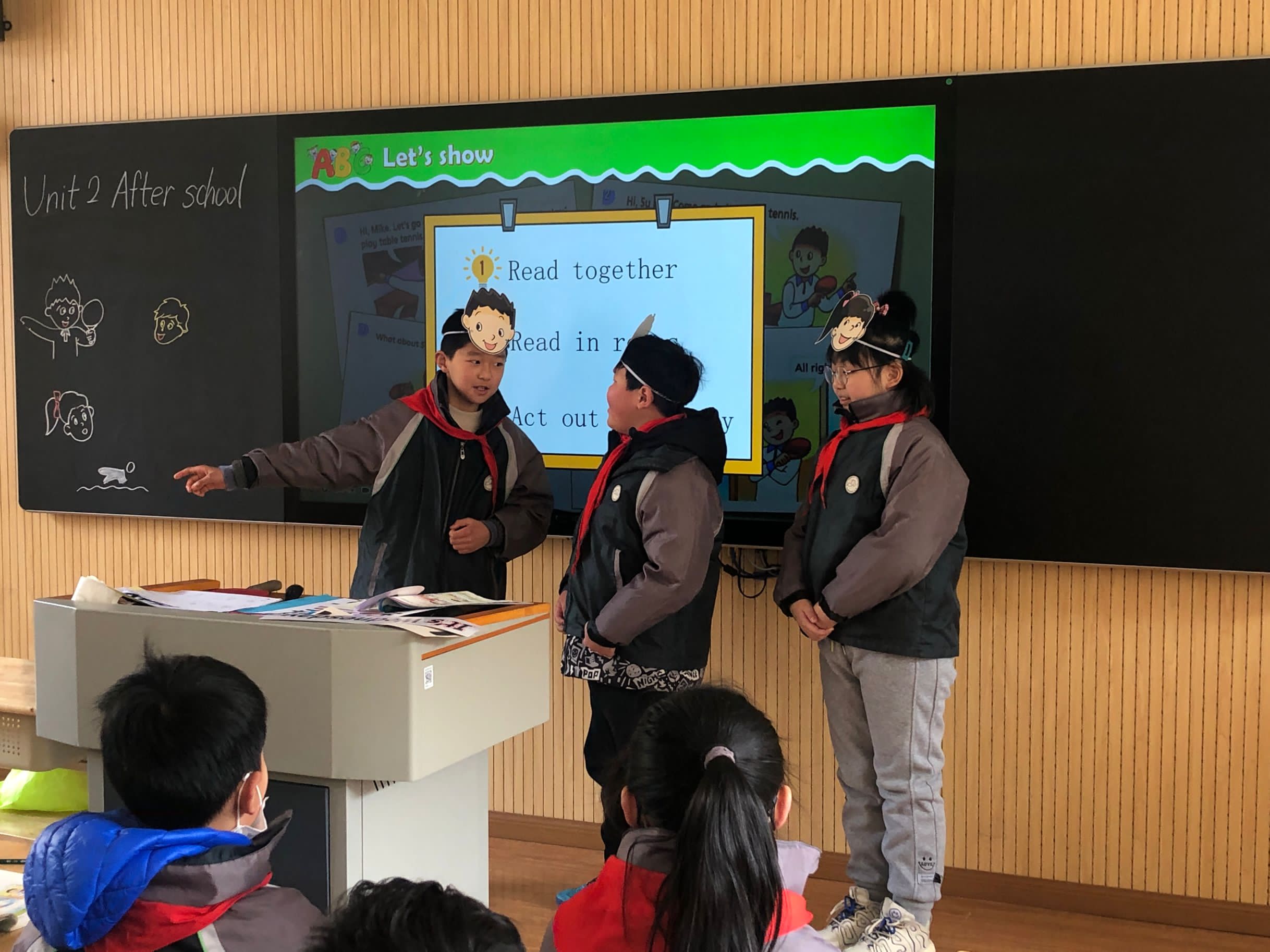 陈雪老师同样执教《Unit2 After school》,课前陈老师围绕“五自学习单”,引导学生互相问答,操练重点单词和词组,为后面的文本理解奠定基础。接着用歌曲引入本单元话题,然后通过呈现班级课表,既复习了上一单元旧识,又巧妙引入新知。在练习句型时,陈老师创设情境,开放式创编对话,既贴合生活,又运用了语言知识。在表演时,陈老师给孩子足够的展示空间,还带来了实物乒乓球,给学生的课堂更增添了欢乐。