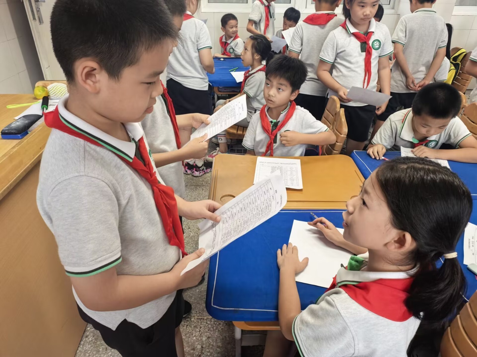 本次活动覆盖了小学二至六年级的所有学生。班级之间互换,以同桌或小组为单位,互为“小考官”和“背诵者”,依据本学期及以往学过的古诗文篇目清单,随机抽取题目进行背诵。
