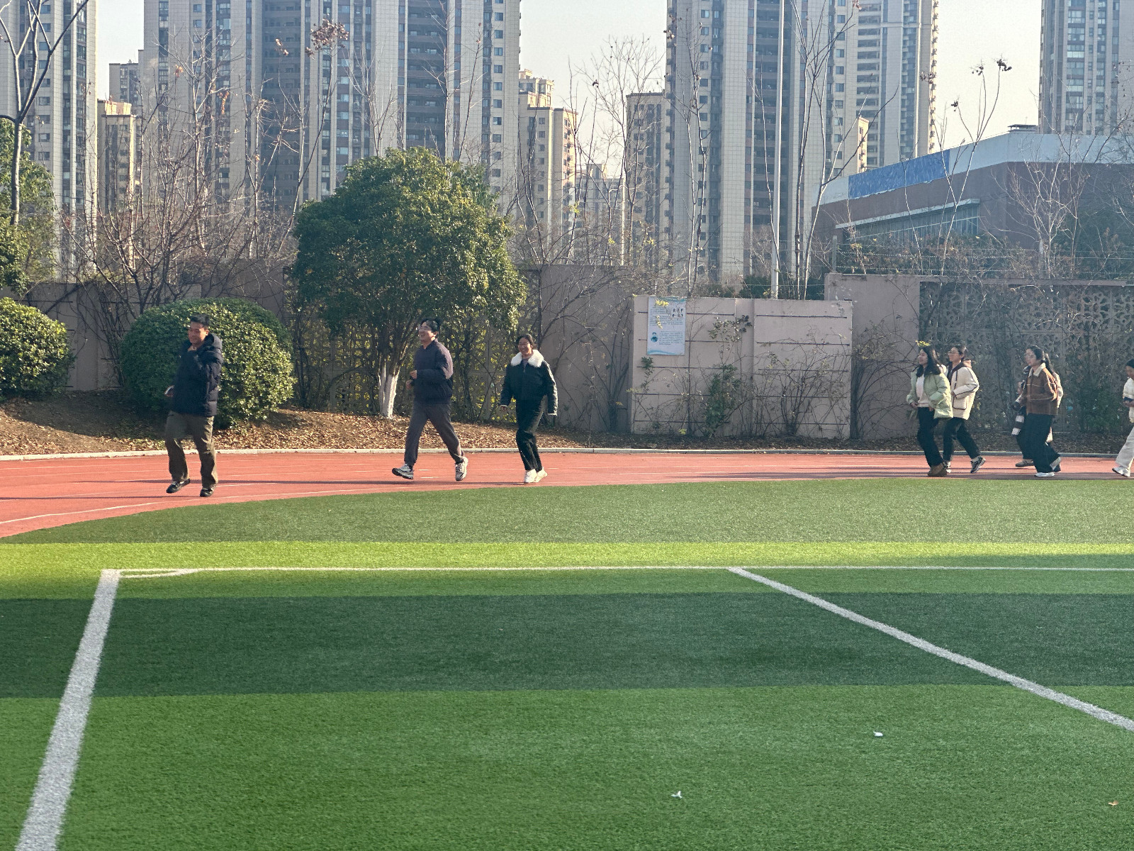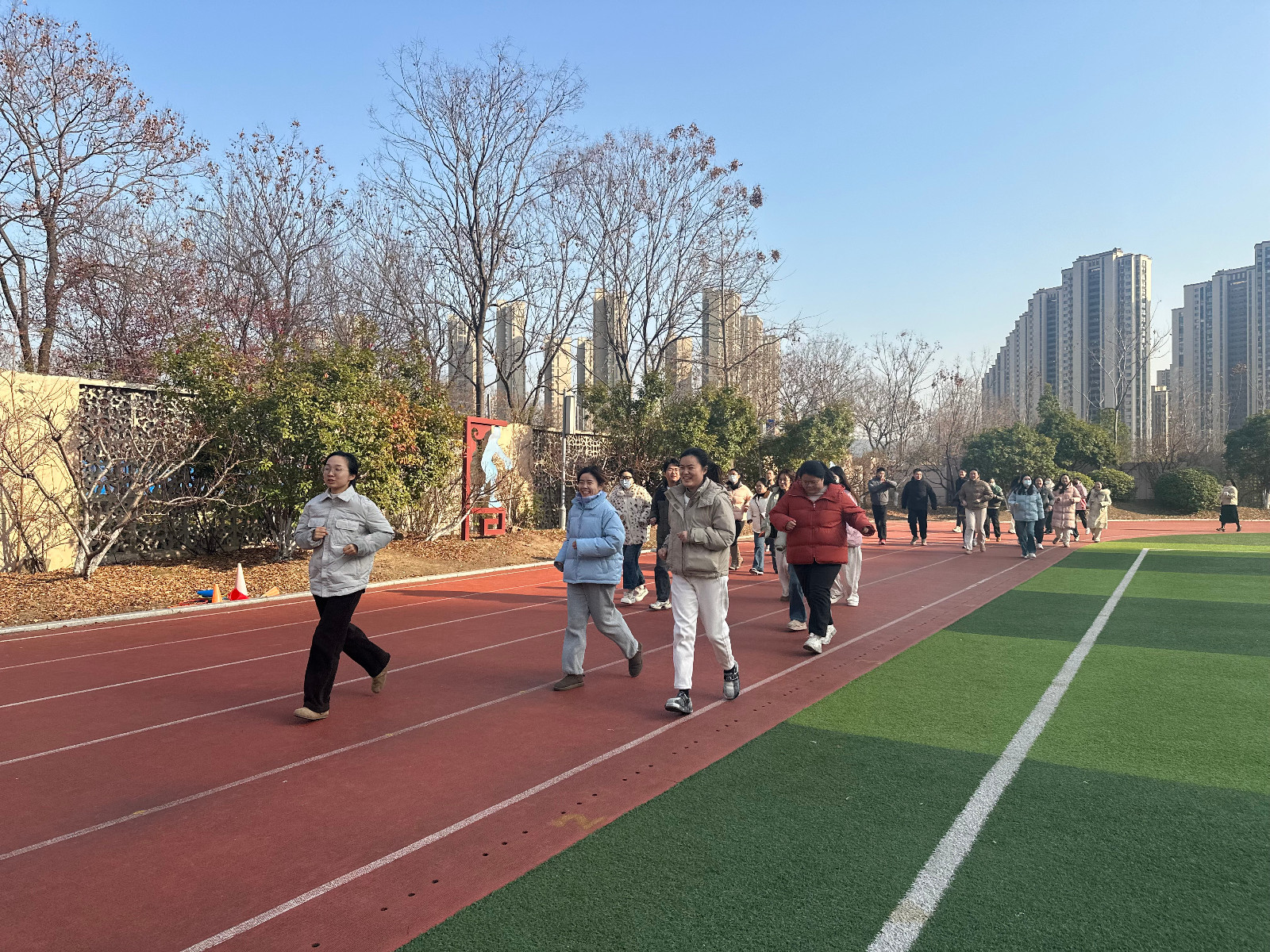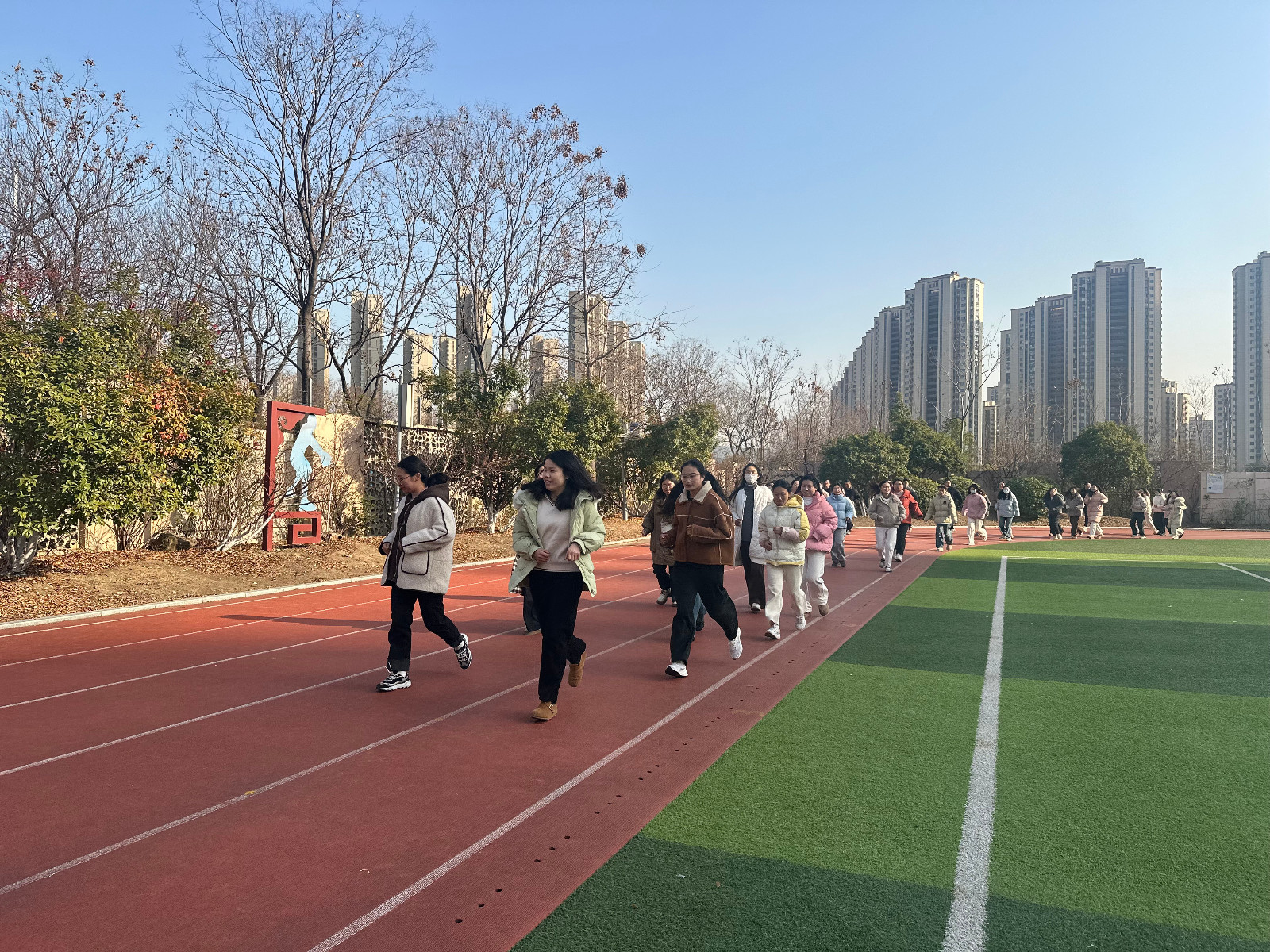 冬日的校园里,寒意袭人,但老师们的参与热情丝毫未减。大家穿着保暖的羽绒服、棉服等休闲服饰,早早来到跑道旁集合。随着一声简单的发令提示,长跑活动正式开始。老师们迈着稳健的步伐向前奔跑,红色的塑胶跑道上,一个个奋进的身影格外醒目。
