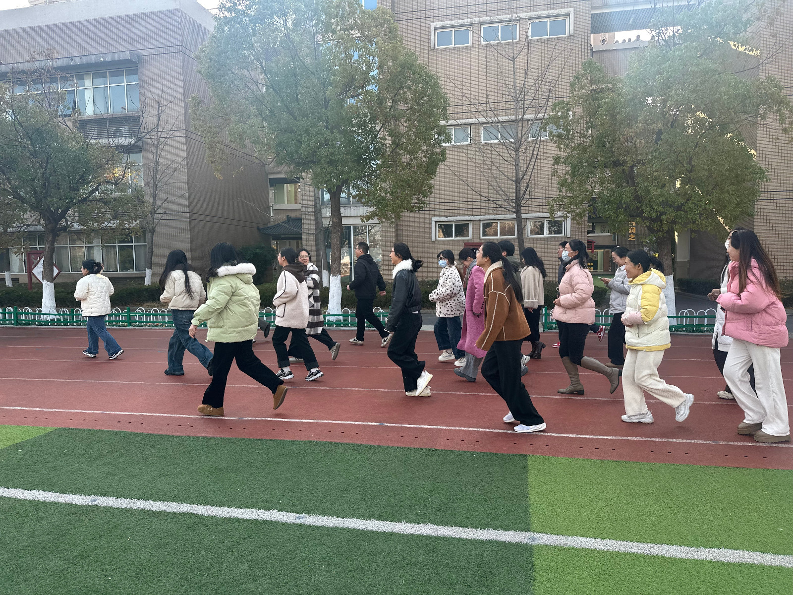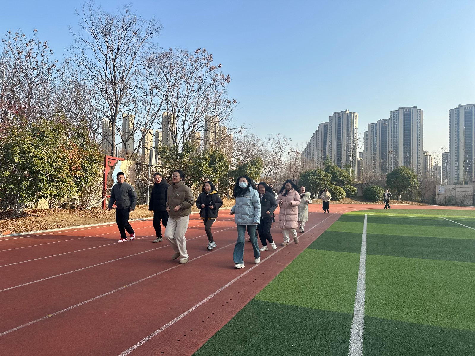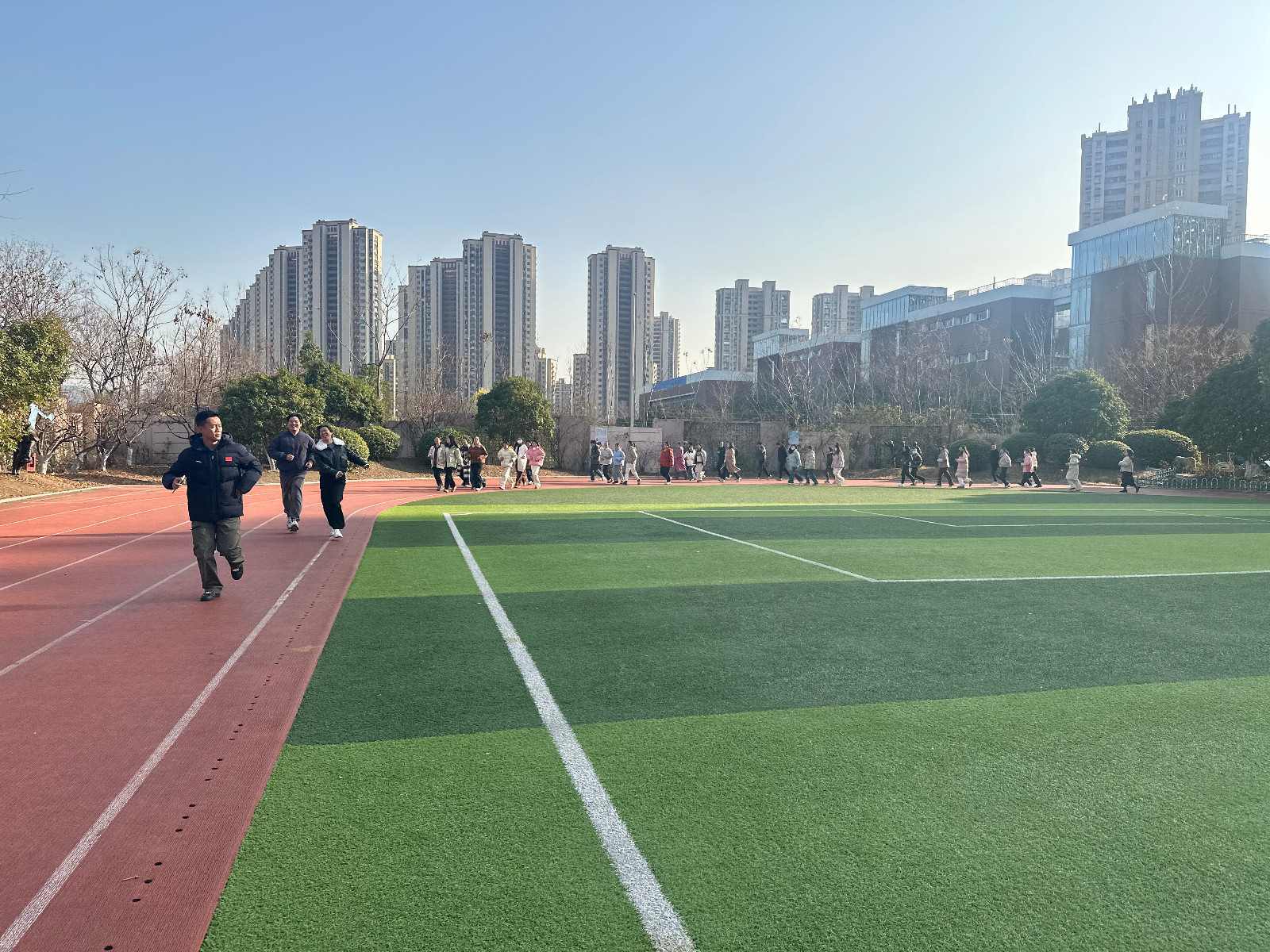 冬日的校园里,寒意袭人,但老师们的参与热情丝毫未减。大家穿着保暖的羽绒服、棉服等休闲服饰,早早来到跑道旁集合。随着一声简单的发令提示,长跑活动正式开始。老师们迈着稳健的步伐向前奔跑,红色的塑胶跑道上,一个个奋进的身影格外醒目。