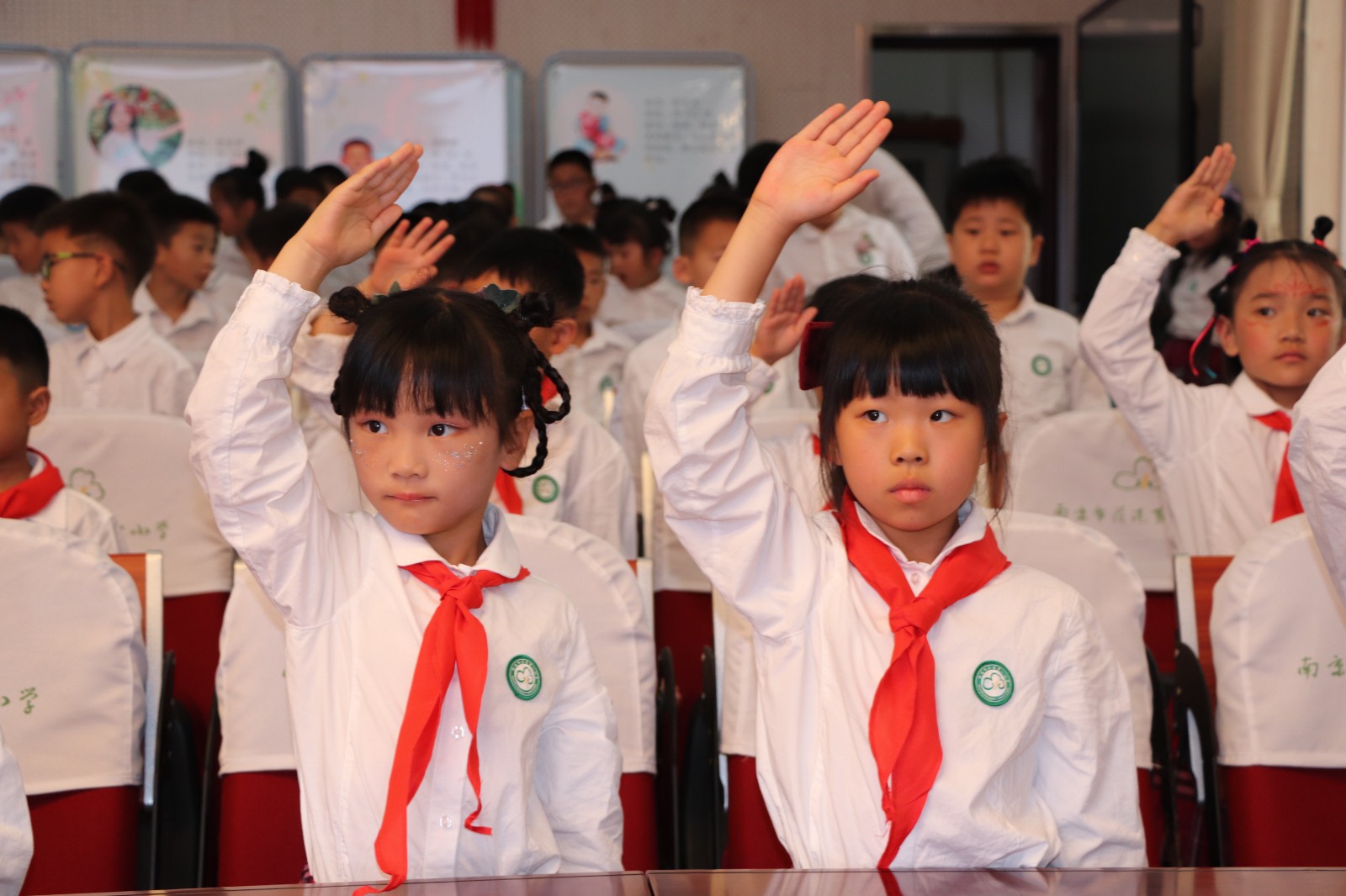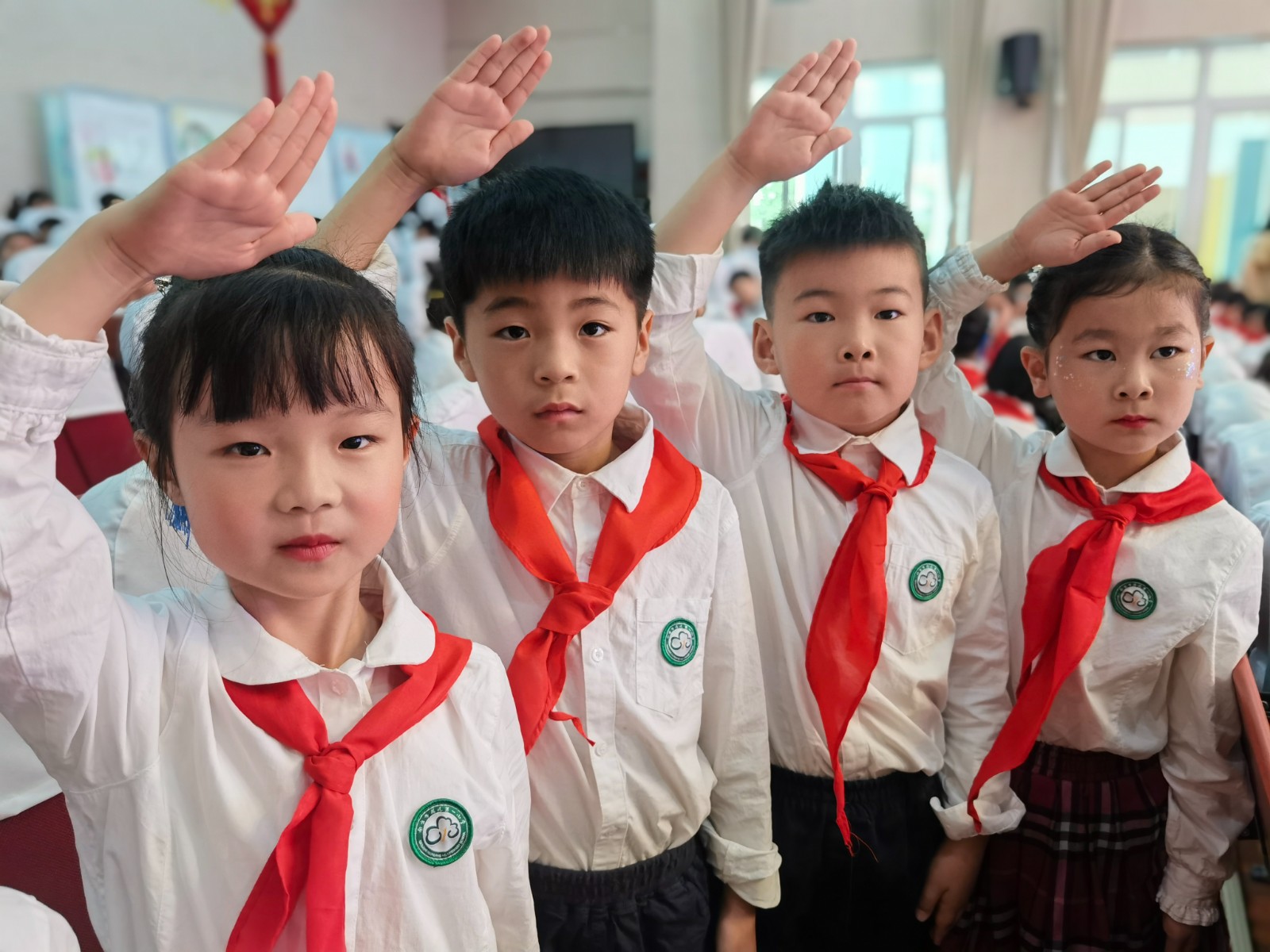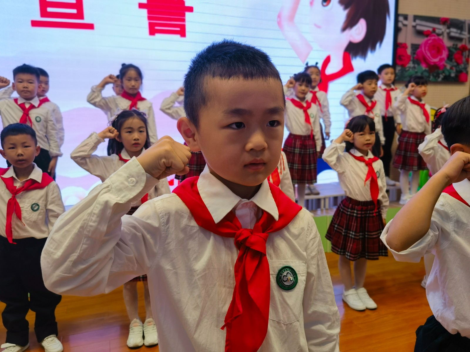 “我是中国少年先锋队队员……”在大队长孙昊天的带领下,新队员们高举右拳,庄严宣誓。神圣的誓言回荡在耳畔,坚定了少先队员们为共产主义事业奋斗的坚定信念。