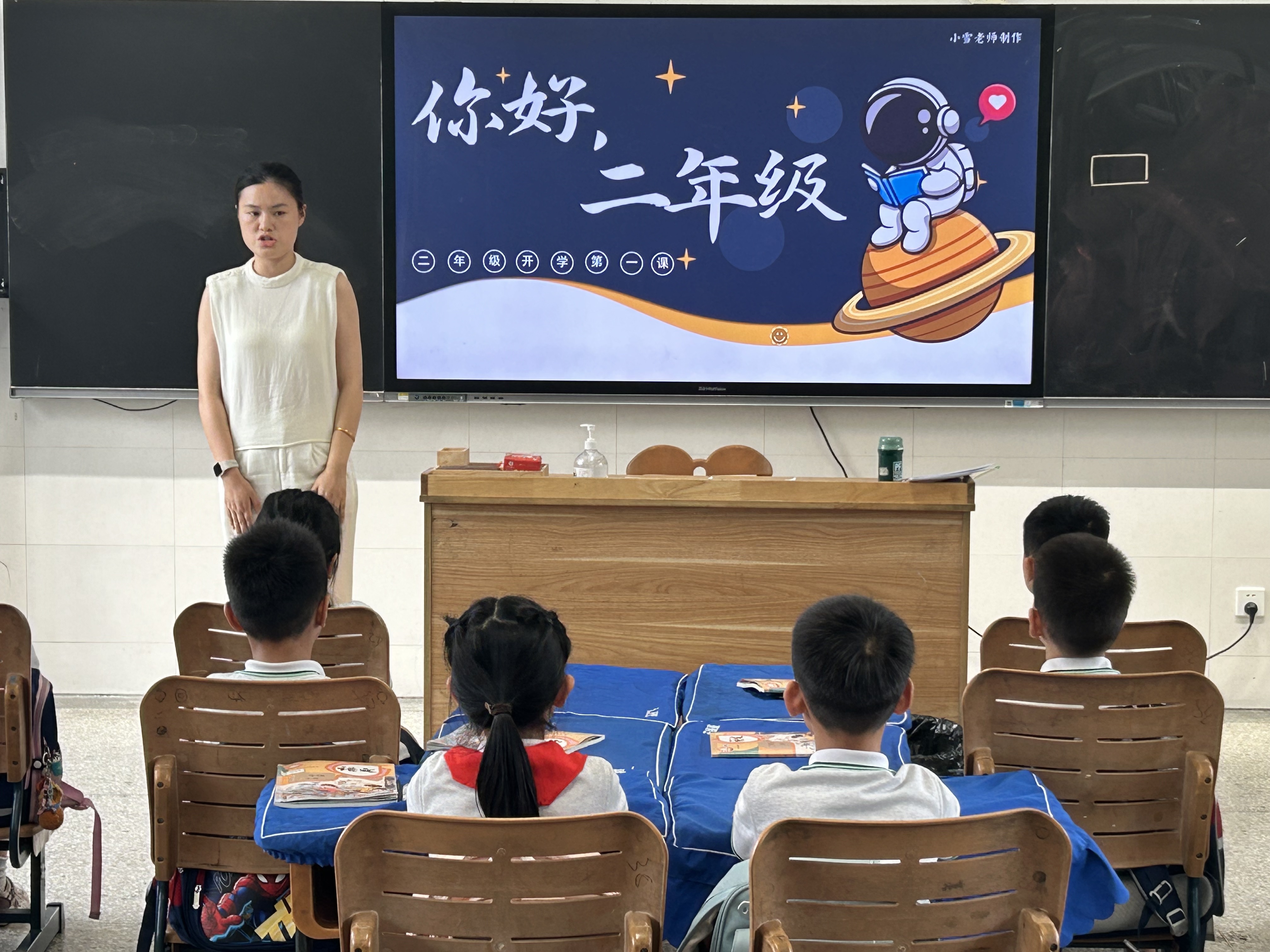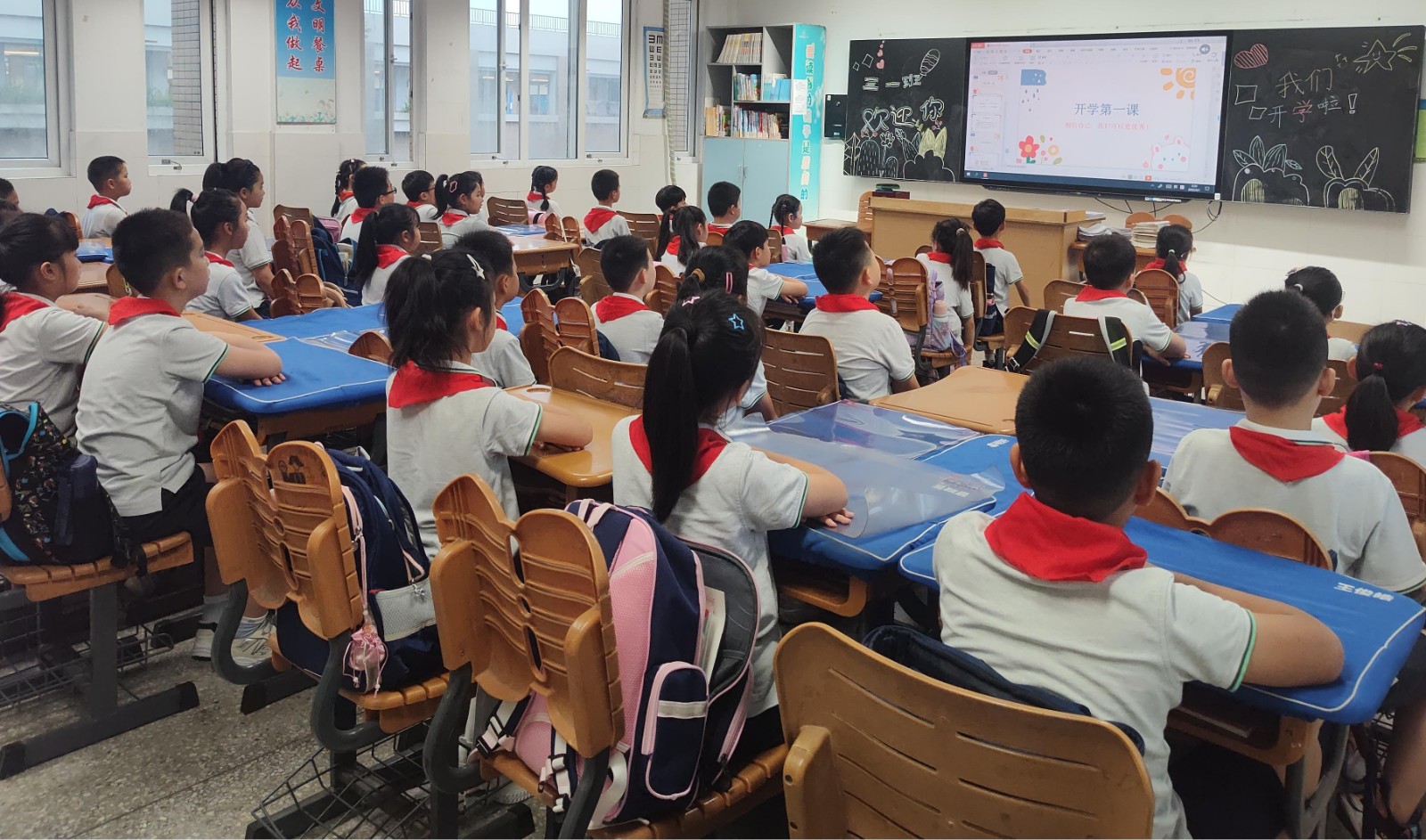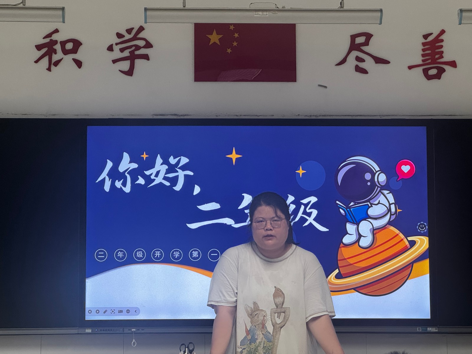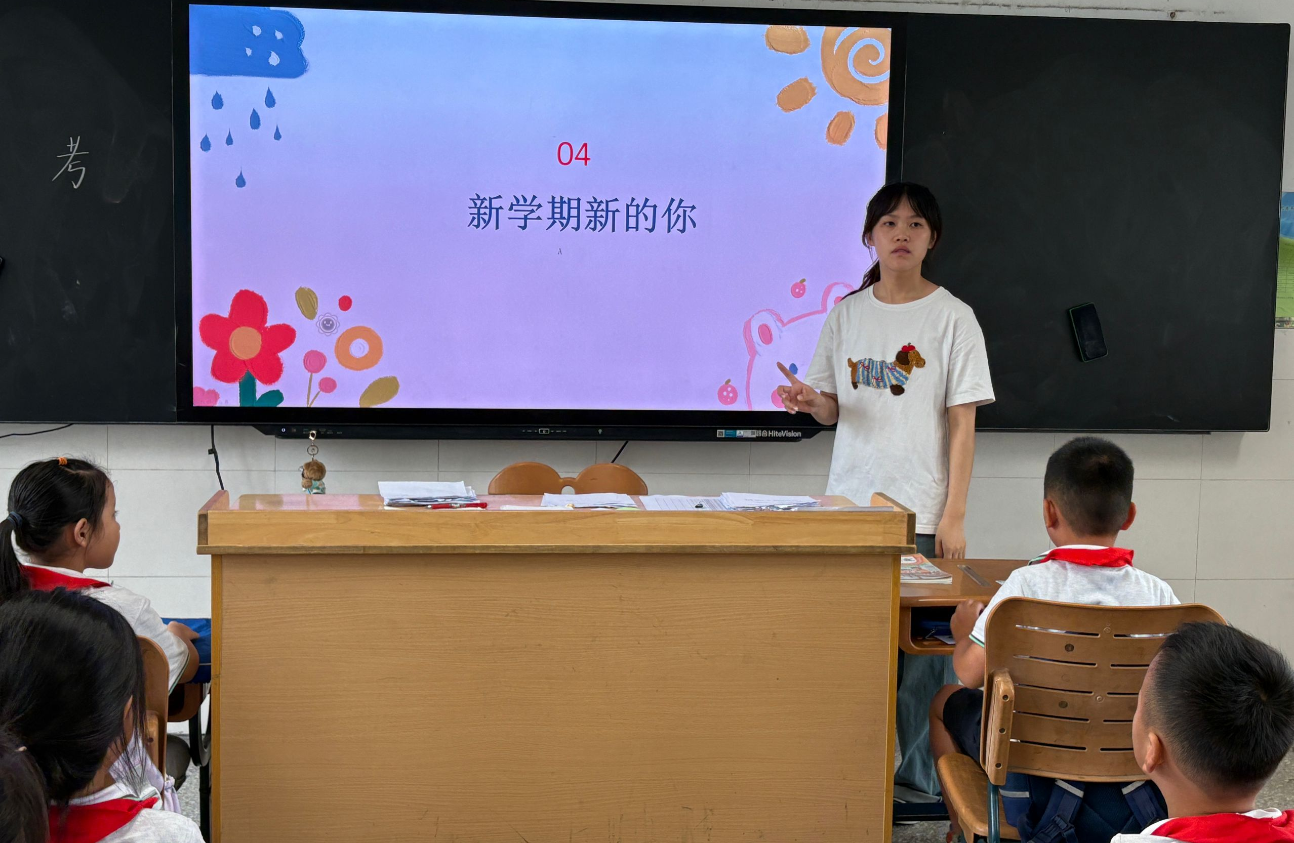 最后,“我的新学期心愿”活动将氛围推向高潮。同学们在彩色卡片上写下对自己的期待,如“上课认真听讲”“交三个新朋友”“每天开心不生气”等。