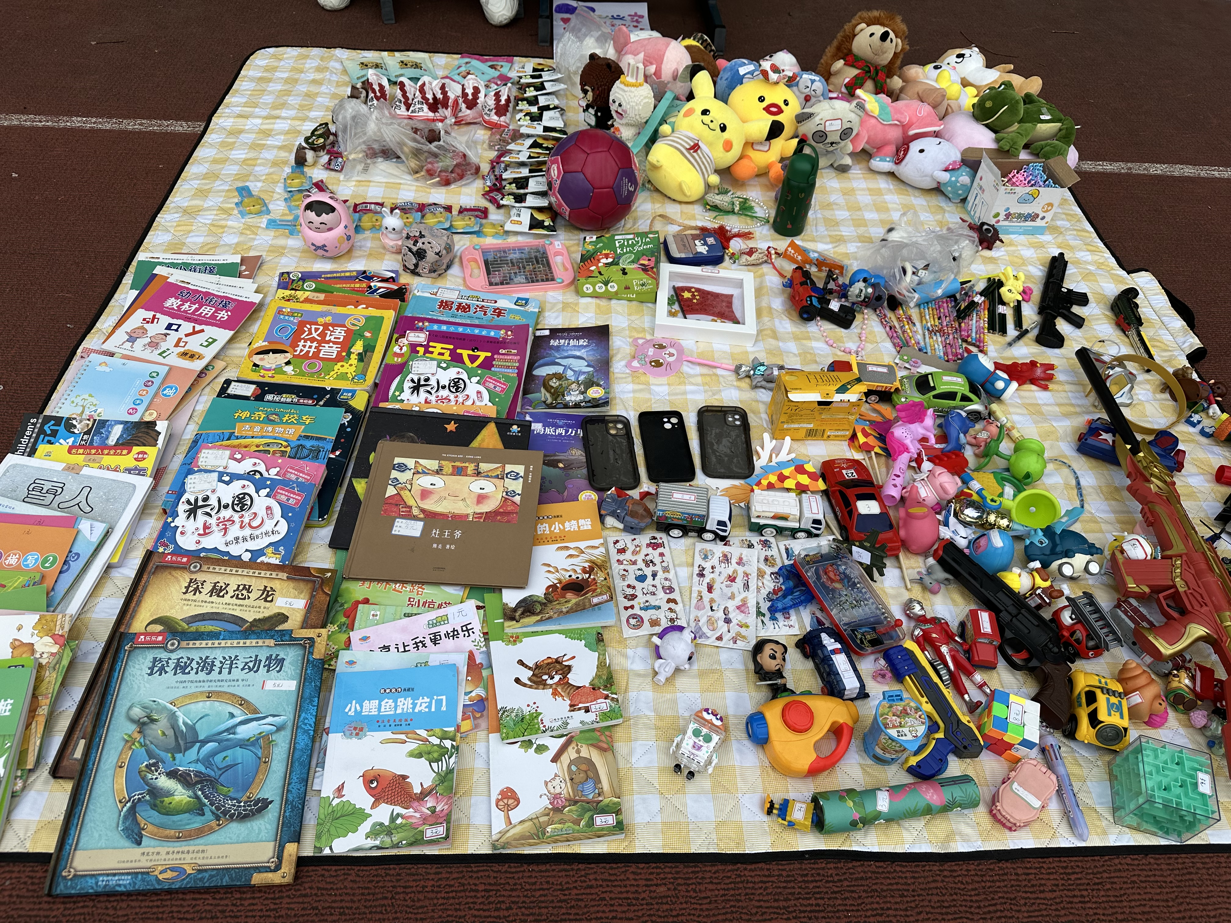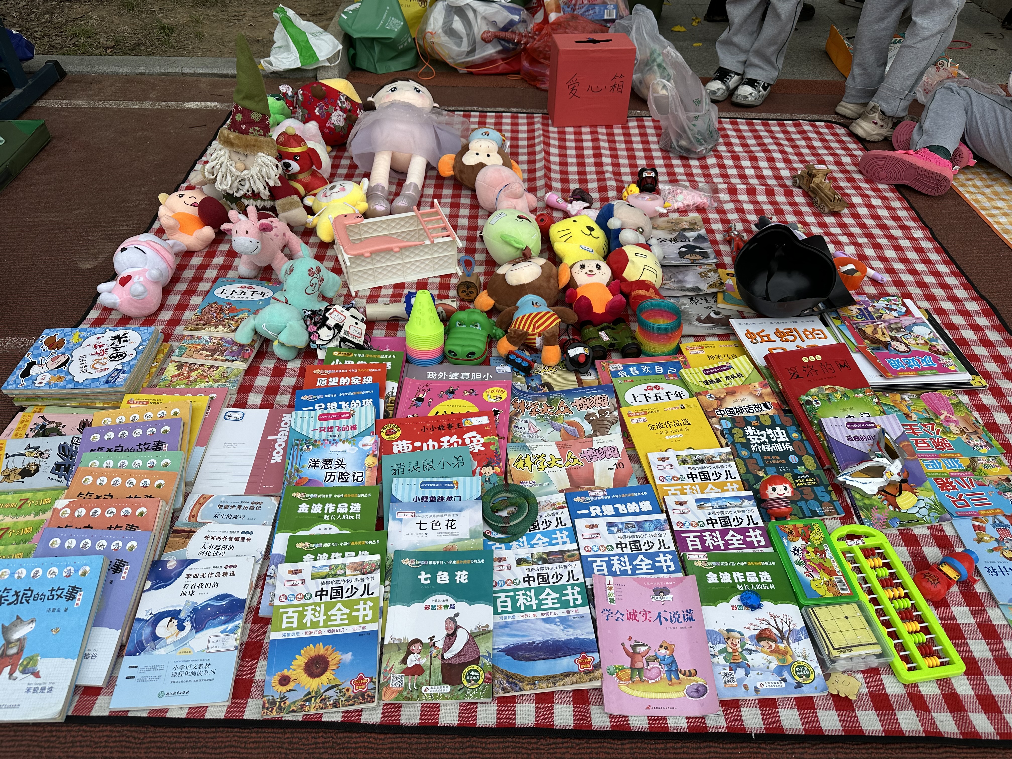 小顾客们则是在各个展台间不停穿梭,东张张西望望,生怕好东西都被抢购完了,买不到自己心仪的物品。孩子们在热闹的叫卖声中,深受感染,在选择自己需要的商品的同时,也献出了自己的爱心。