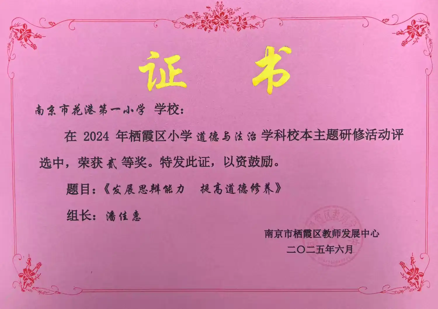 我校在2024年栖霞区小学道德与法治学科校本主题研修活动评选中获二等奖。