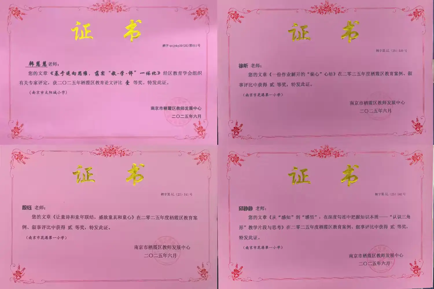 韩慧慧、徐昕、殷钰、邱静静老师2025年区案例评比中获一、二等奖。