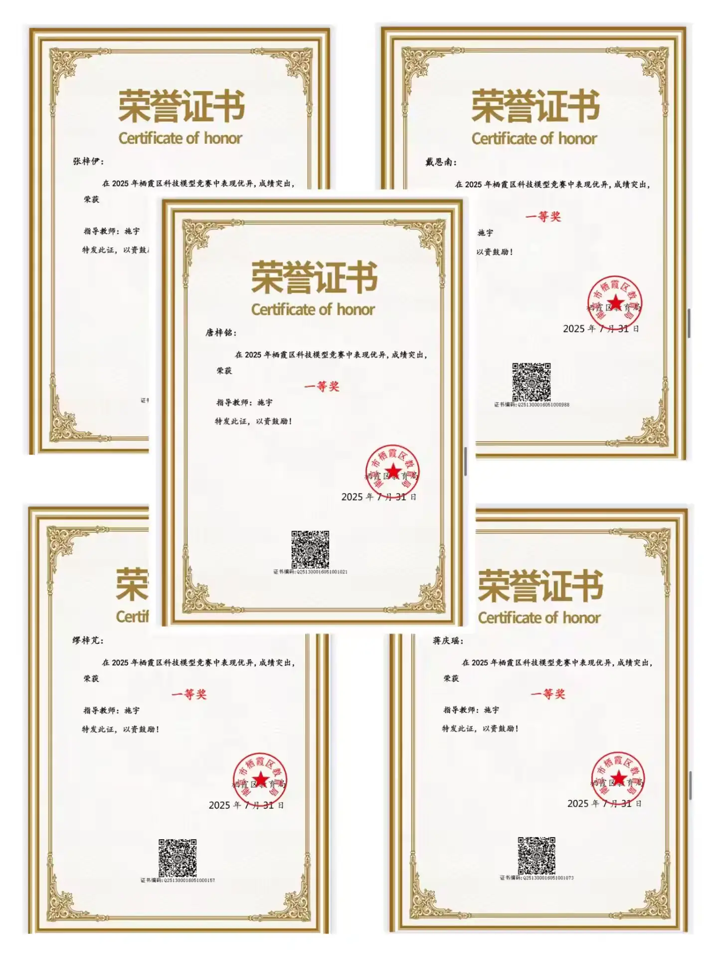 施宇老师在2025年栖霞区科技模型竞赛中荣获优秀辅导员称号。